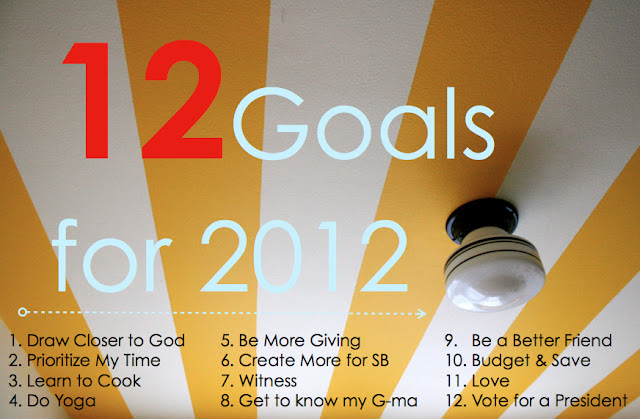 This year, instead of having one resolution for 365 days, I decided to make monthly goals. 12 Goals for 2012 reflects things I want to work on and improve upon in the next year. From working on my friendships and relationships, to getting more involved with the community and politics, to personal goals and hobbies, I'm going to be keeing you all updated as I accomplish or make progress on them. I hope you all have amazing goals for the next year and are inspired and encouraged by them.